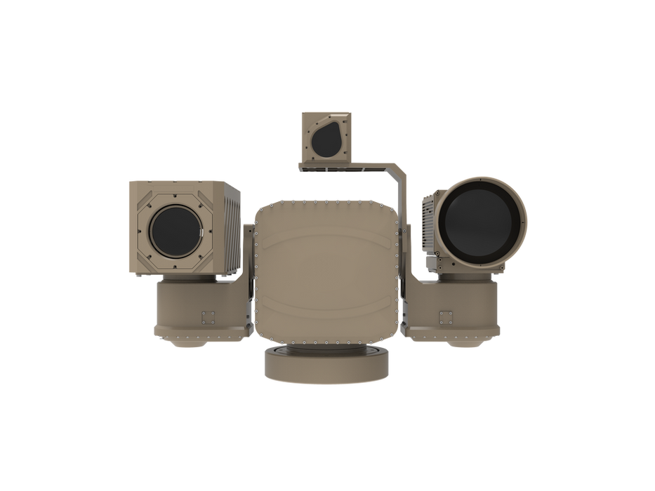 ±90° tilt). The integrated EO sensors feature their own additional pan capability, allowing for